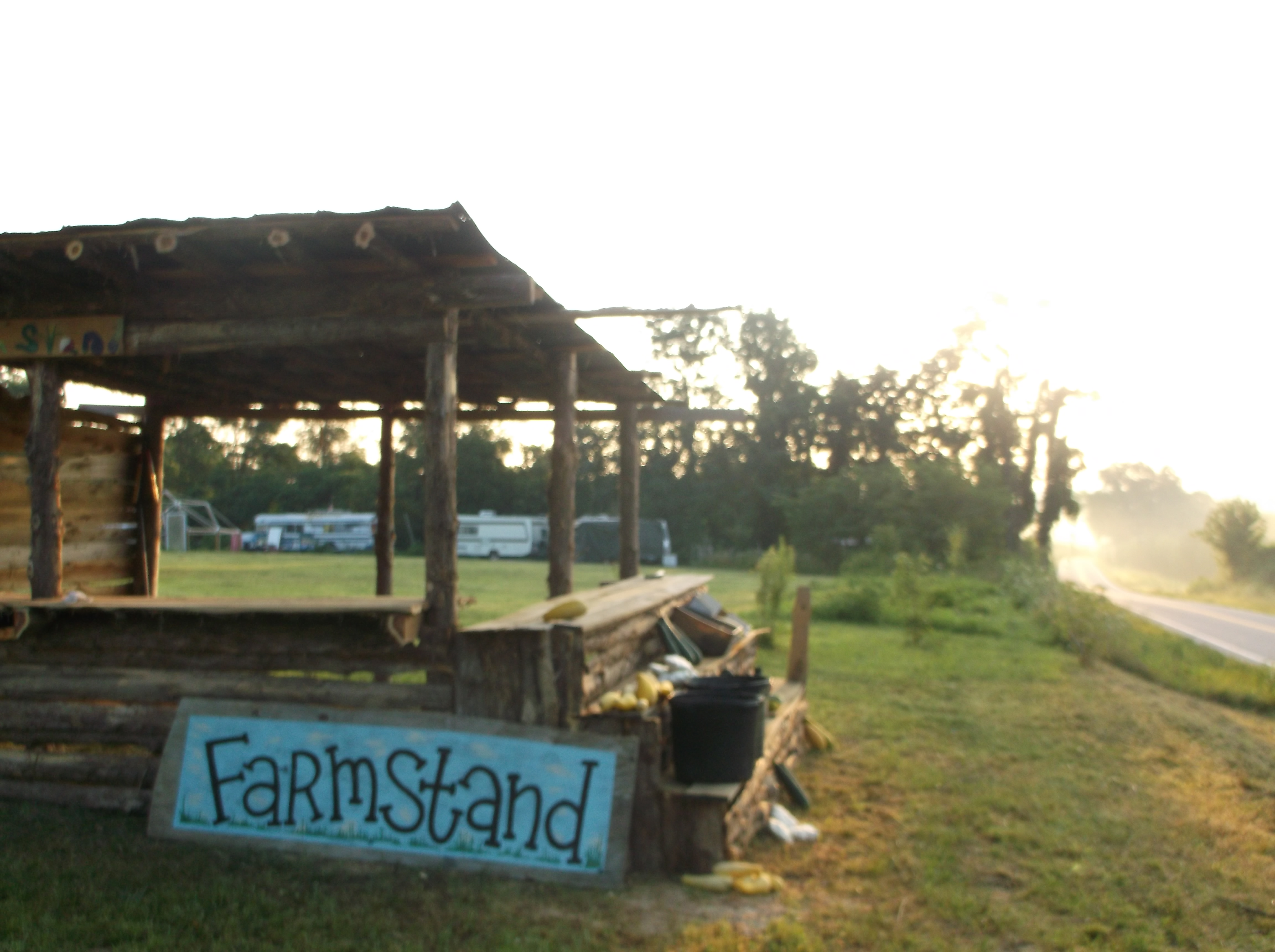It is now July and everything is still going amazingly well. There are less people here now than there has been since April but we are kicking ass. The kitchen is well stocked and has been pumping out top notch meals, morale is high and we are getting things done. In the last couple weeks we have built a farm stand at the front of the land in order to fund more garden stuff and provide people with a place where they can sell there art, crafts and goods. We are working on a big pumpkin patch along with a lot of other fall crops and have been picking black berries for jam, wine, and pancakes. Some of us saw a building being torn down and stopped to ask about the scrap building materials, not only did we end up getting a ton of blocks and other stuff but the contractor told us he would let us know whenever he has free stuff we can have ……so that’s cool.